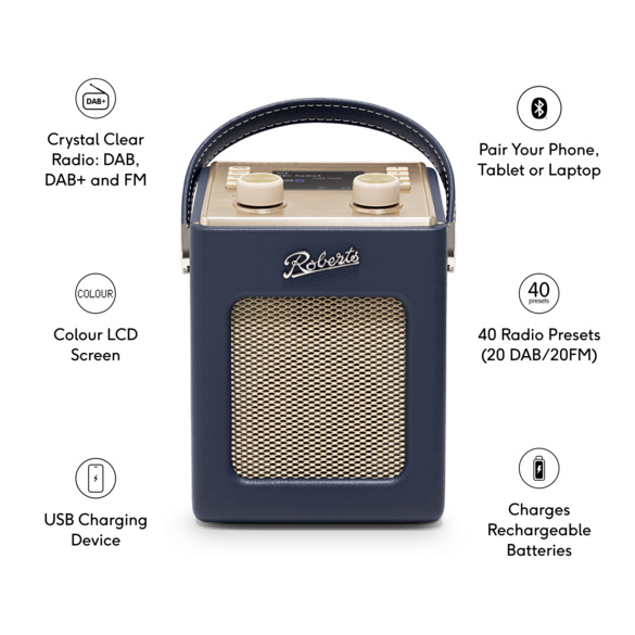 Roberts Revival Mini 2 draagbare DAB+ FM radio met Bluetooth ontvangst, Midnight Blue