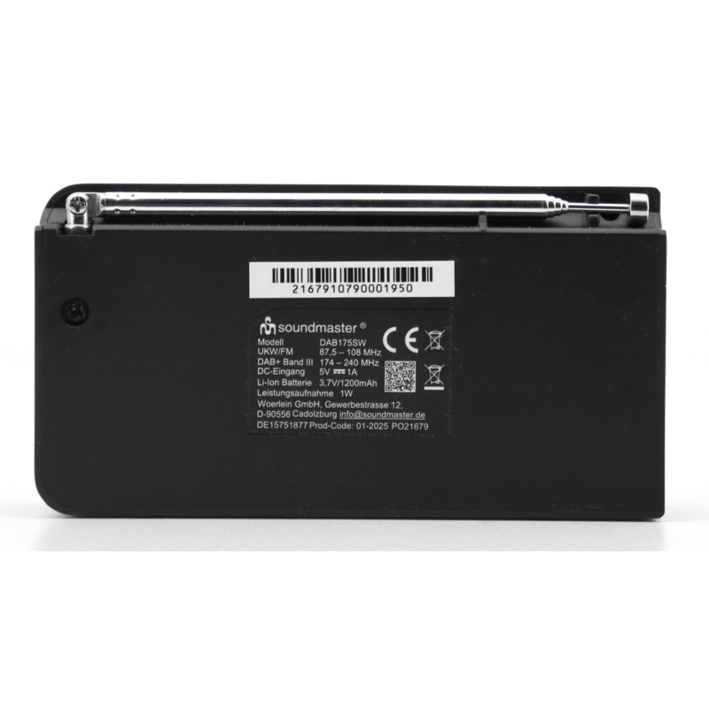 Soundmaster DAB175 SW kleine oplaadbare radio met DAB+, FM en Bluetooth