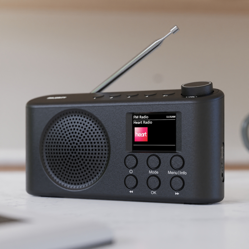Sla tot 40 zendervoorkeuren op en eindig je dag met de sleeptimer functie, waarbij de radio automatisch uit gaat. De Orwell Pro is uitgerust met een duidelijk kleuren scherm en een 3,5 mm hoofdtelefoonaansluiting en ondersteunt zowel individueel luisteren als afspelen in het openbaar. De tactiele knoppen en vier sneltoetsen voor voorkeurszenders maken de bediening eenvoudig en intuïtief.