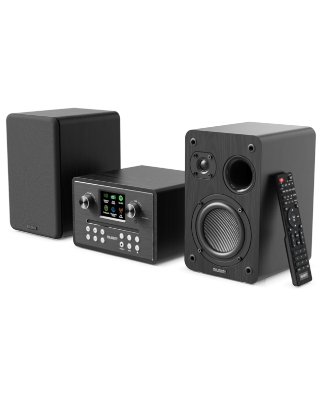 Majority Audio Hi-Fi stereo systeem met internetradio, DAB+, FM, CD, USB, Spotify en BluetoothMAJORiTY AUDiO Hi-Fi Levertijd: 1 - 2 dagen, hier op voorraad!